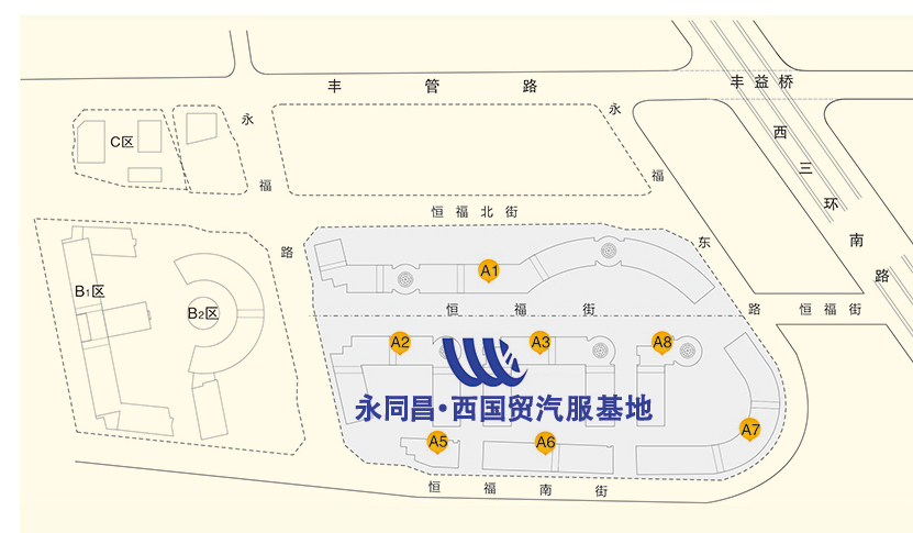 北京永同昌·西國貿汽服基地是永同昌集團的重點產業之一,屬于北京市豐臺區麗澤商務區核心項目。目前入駐商戶逾千家。業務范圍包括整車銷售、汽車改裝、汽車維修、汽車輪胎、汽車配件、汽車電子、裝飾用品等多個領域,品種、品牌、車系、規格齊全,基本涵蓋了中國公路上行駛的所有車型。基地擁有八部貨梯、二十部自動扶梯可以無障礙輕松運送貨物至二、三層,能夠為廣大采購商、消費者提供全面完善的售前、售中、售后服務。